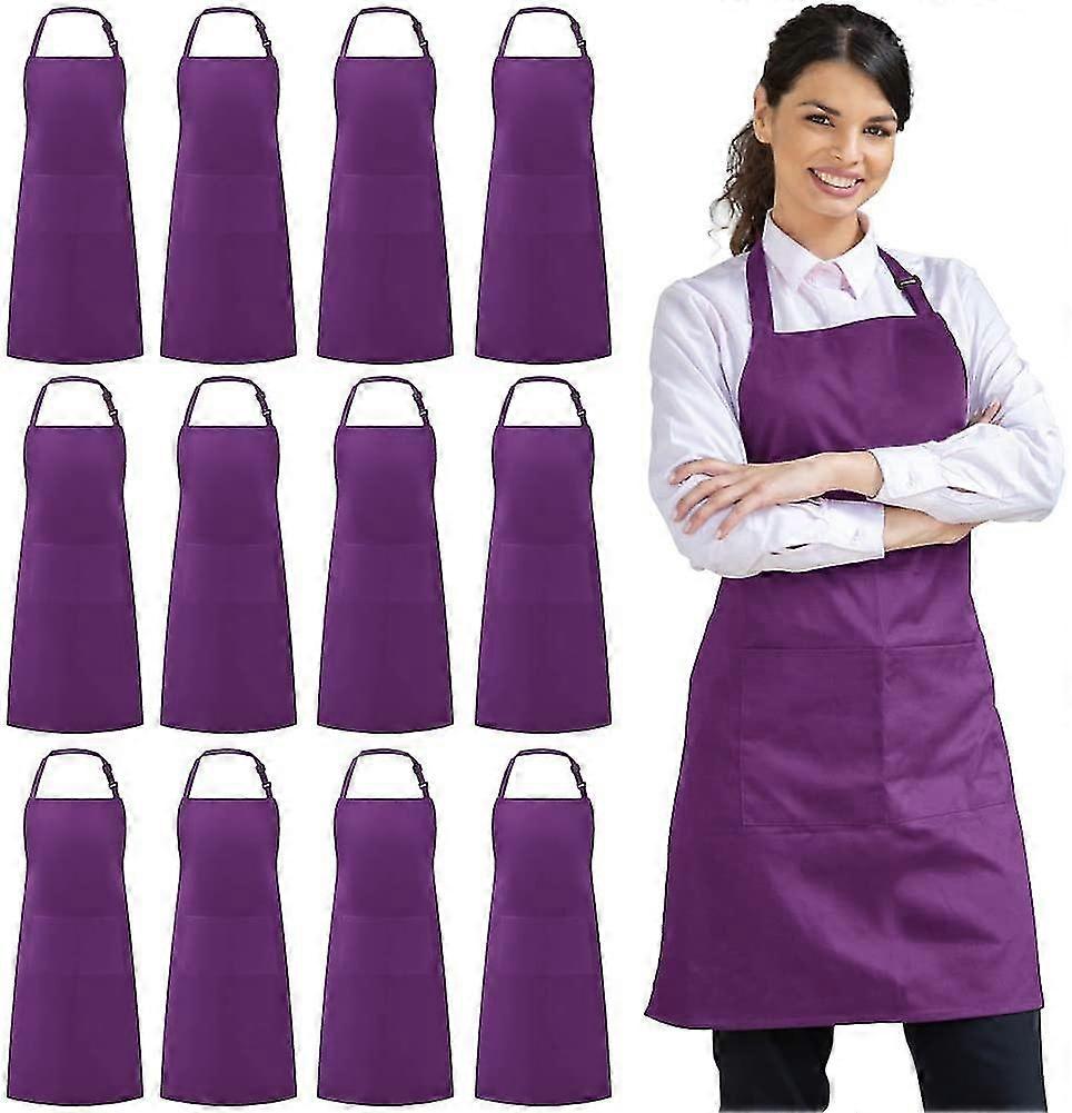 12 Pack Bib Apron Waterdrop Resistant With 2 Pockets Cooking Kitchen Apron