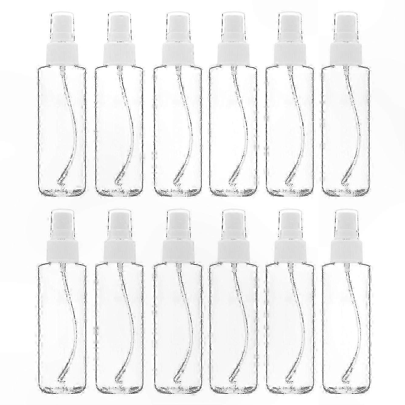 Provides a fine mist that's great for multiple uses. Holds 120 ml or approximately 4 oz. MULTIPLE USES: Perfect for storage and usability for personal and home needs including essential oils, beauty products, hairspray, skincare, perfumes, floral waters, air fresheners, cleaning sprays, and aromatherapy. GREAT FOR CRAFTERS AND ARTISTS: These convenient bottles are ideal for hobbyists and artists to create customized fabric dyes, mixed paints, ink, and more. CONVENIENT: These clear empty bottles are see-through for easy visibility of contents. Screw-top caps twist off easily for refilling. Label using permanent markers or sticker labels for added convenience and organization. GREAT FOR TRAVEL: Whether on vacation or going to the gym, these portable bottles allow you to carry your favorite mist products. Fit easily in purses, gym bags, luggage, tote bags, and more. Non-toxic, odor-free, corrosion-resistant, and easy to clean. Fine threading on the bottle mouth helps prevent liquid leakage. It is recommended to test with a small amount of water before use to ensure no leakage occurs. These compact bottles fit comfortably in pockets, purses, handbags, backpacks, or luggage. Ideal for travel, especially during flights and outdoor activities. Color: White, transparent. Material: PET plastic. Size: 3.9 cm in diameter, height 15.2 cm. Package Contents: 12 x Bottles. Only the above package content is included; other products are not included. Note: Lighting and display differences may cause slight color variations between the image and the actual item. Measurement allowance is +/- 1-3 cm.