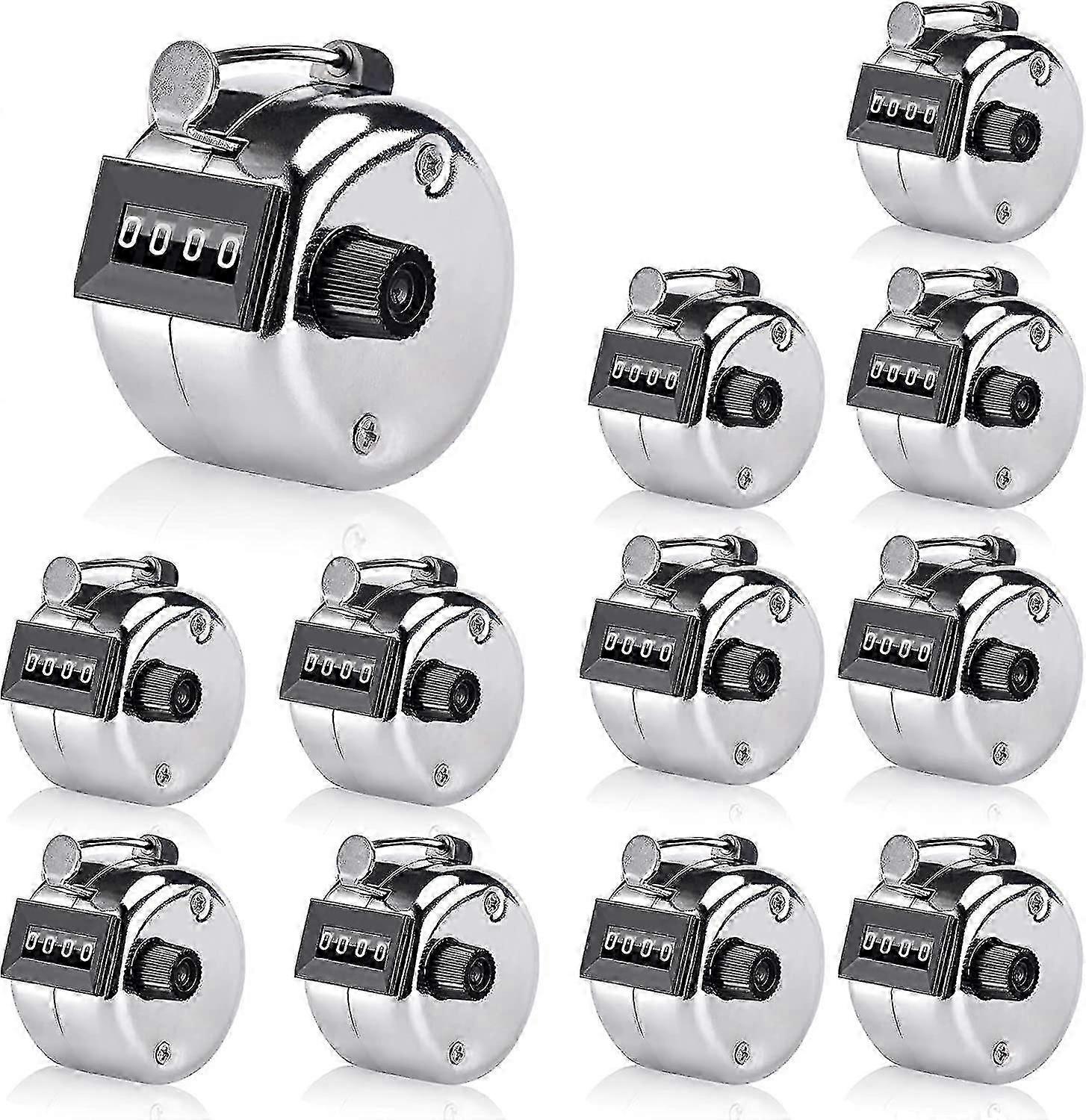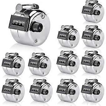 12 Pack Of Metal Hand Tally Counter,4-digit Lap Counter Clicker, Manual Mechanical Handheld Pitch Click Counter With Finger Ring For School Event & Go