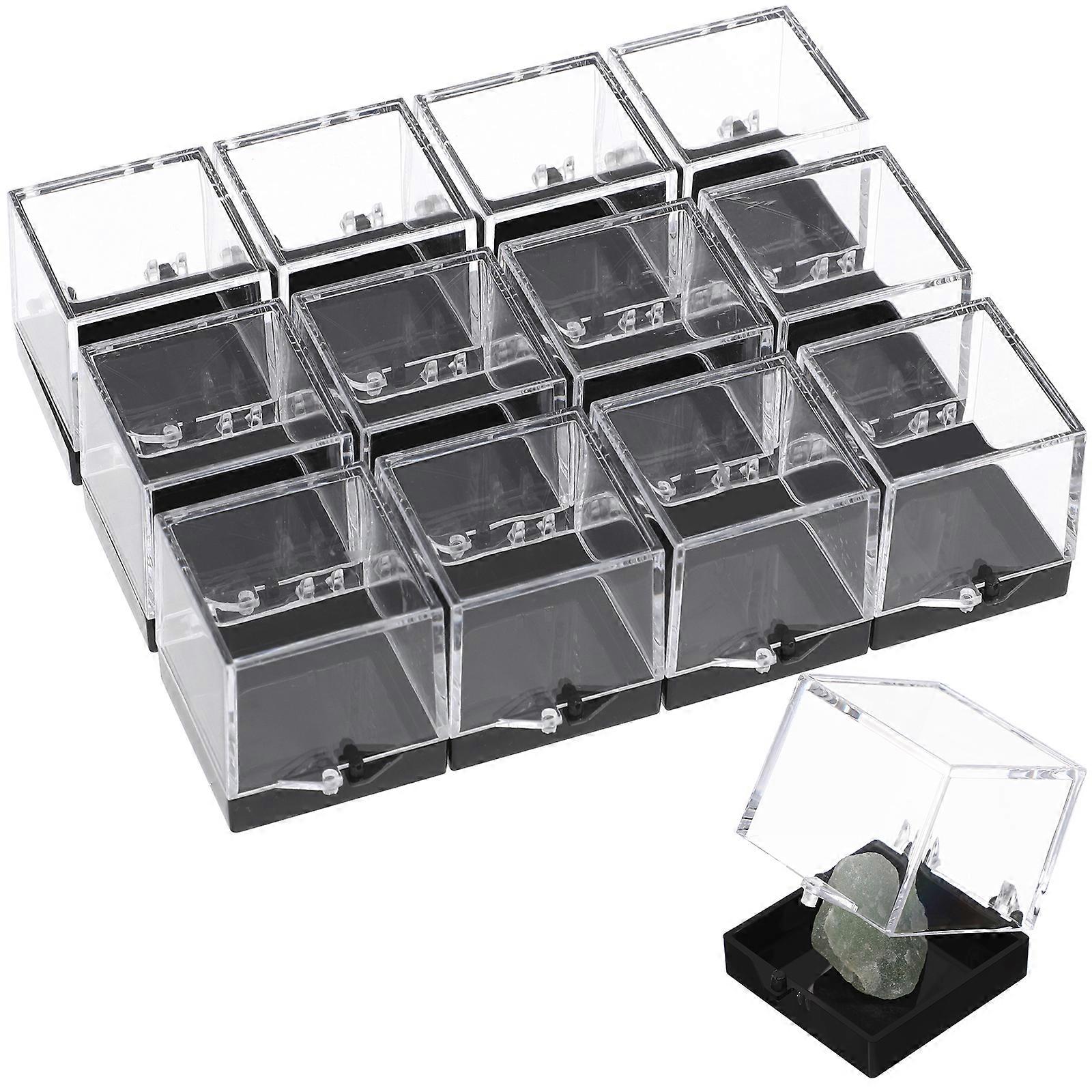 12 Pcs Clear Jewelry Organizer Box Baseball Display Case Mineral Specimen Display Boxes Mini Clear Boxes Mini Square Cube Boxes