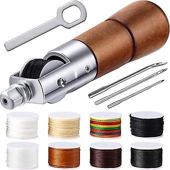 12 Pcs Leather Sewing Awl Kit Hand Stitcher Set, Hand Awl Tool, 3 Sizes Needles and 8 Colors Spools