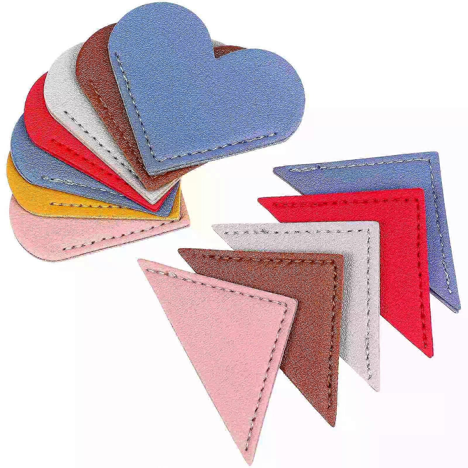 12 Pcs PU Bookmarks Heart Triangle Design Colorful Corner Page Markers Bookmark Pack For Reading Lovers Gift Set School