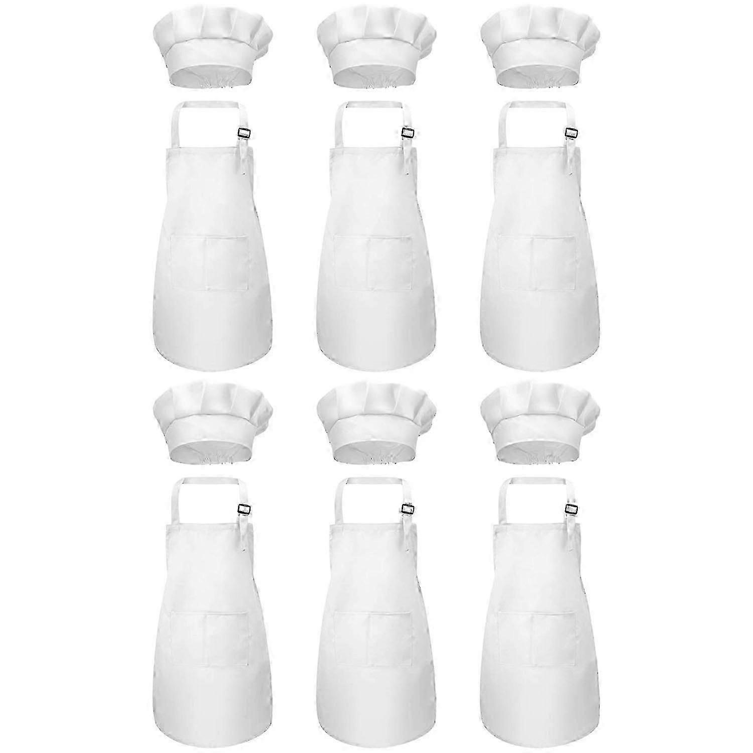 12-Piece Apron and Chef Hat Set, Adjustable Children's Apron with Pockets (White, Suitable for 2-6