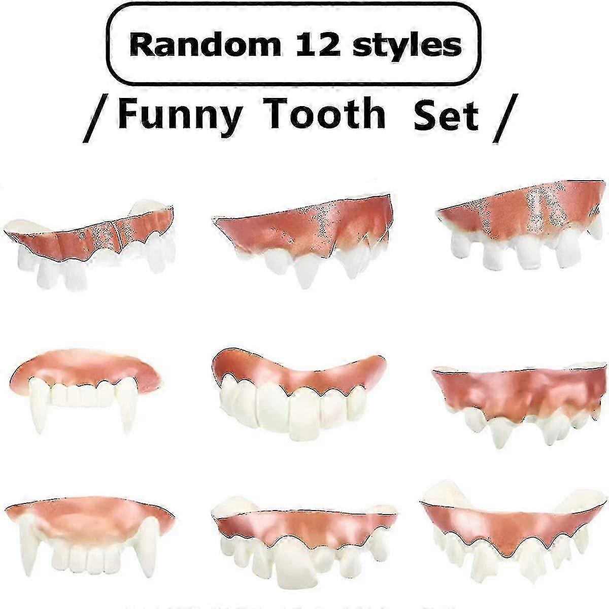 12 Pieces Artificial Teeth Set for Halloween Party Gag Funny Vampire Denture Props Rough tooth material: ugly fake teeth are made of PVC material, which is odorless, non-toxic, harmless and easy to clean for next time, which makes Halloween more creepy. Suitable size: vampire dentures measure 7.5 x 2.5 x 1.5 cm / 2.95 x 0.98 x 0.59 inches, (different plugs have different sizes), one size fits best, clothes teeth are shaped like life, can create a strong Halloween atmosphere Quantity:There are 12 kinds of dentures (12 styles) to choose, more than enough for you to celebrate When you wear these rough teeth, you stand out from the crowd and help you win the costume prize. Color: as shown in the picture, the vampire denture teeth have a color similar to real teeth and gums, which is vivid and vibrant. These funny and strange thick teeth are sure to make your friends laugh and give you a different feeling. Make your party more fun by painting on zombie costume accessories or as a gift for your friends or family.Wide application: these ugly novel dentures are suitable for many occasions, such as Beautiful photo props allow you to take stunning and impressive photos and add more Halloween atmosphere to your Halloween party.