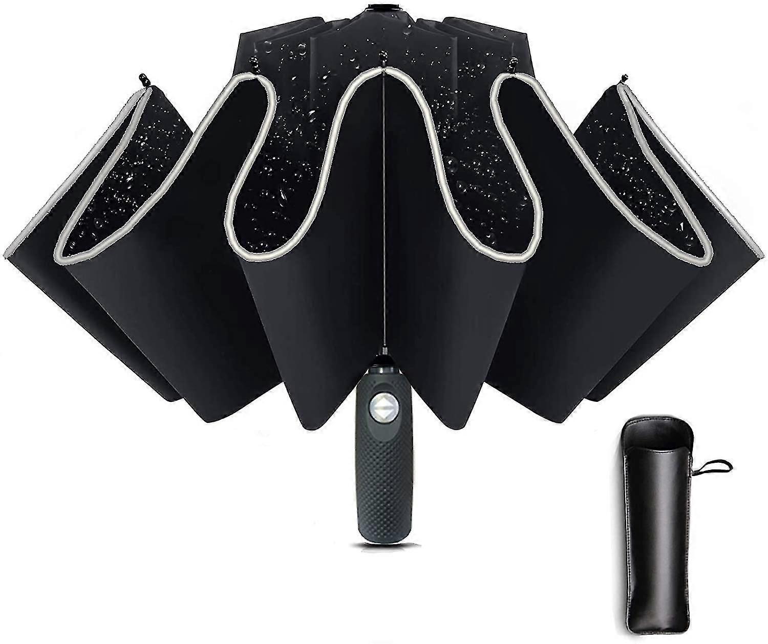 12 Ribs Inverted Umbrella Windproof Travel Umbrella Reverse Folding Umbrella With Reflection