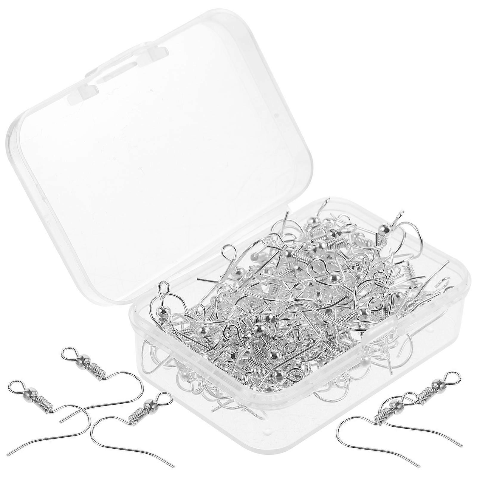 120pcs Silver Plated Earring Hooks with Balls & Coils – DIY Jewelry Making Kit with Transparent Storage Box, Lightweight & Comfortable for Ear