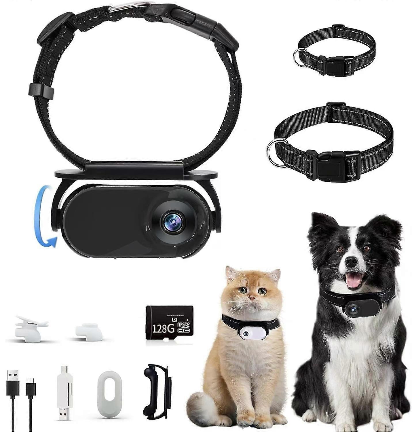 128G Black Cat Camera Collar Pet Camera with Camera Clips