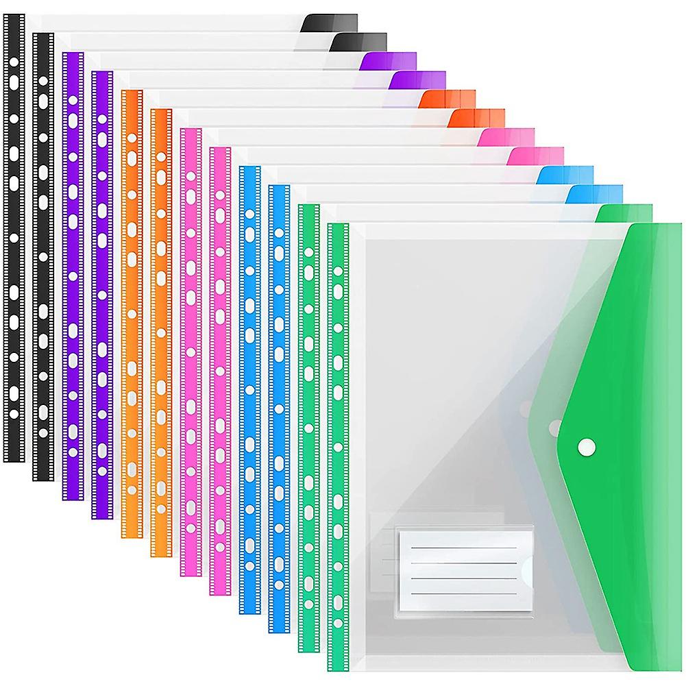 12Pack A4 Plastic File Folder,Expandable A4 Expandable Punched Pockets for A4 Folders,with Snap Clo