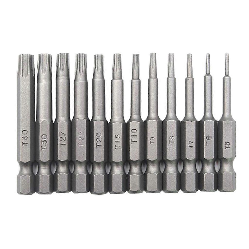 12Pcs 50mm 1/4 Inch Hex Shank T5-T40 Torx Head Screw Driver Bits Set Electric Screwdriver Tools High Performance Durable Multicolor