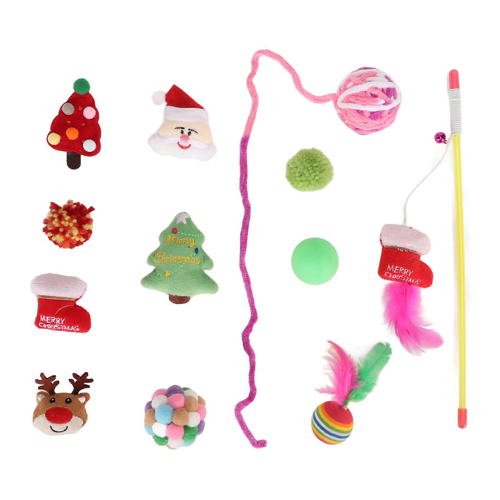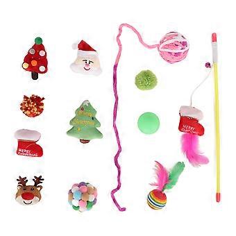 12pcs Christmas Cat Toys Relieve Boredom Interactive Pet Cat Assorted Toys With Feather For Kitten