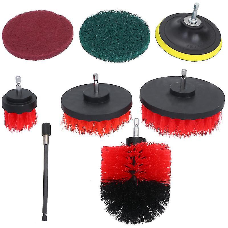 Features - Color: Red. - Material: Plastic. - Packing Size: About 28 x 21 x 9cm. - This power scrubber drill brush attachment pack allows you to tackle any cleaning application. - Each drill brush attachment fits most cordless drills or impact drivers. - This drill brush kit comes with different different sizes and shapes of brushes to make sure you have the best tool for different job. - This power scrubber brush kit will save you time especially if you want a deep clean for your bathroom.