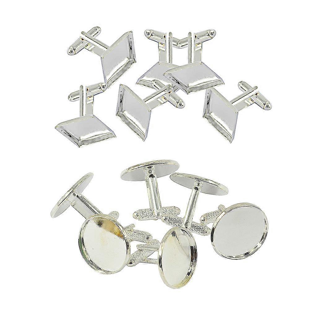12Pcs Mens Square Round Blank Setting Base Pad CuffLink DIY Cabochon Cufflink
