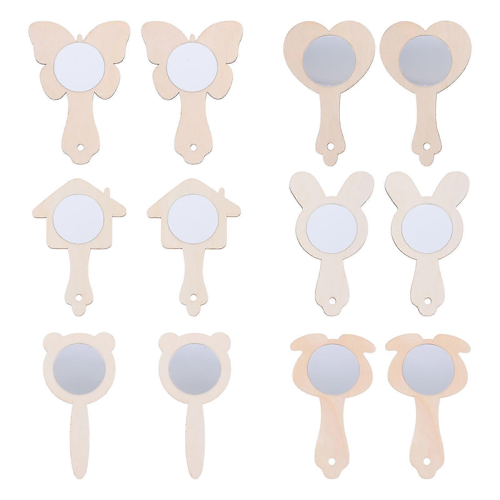 12pcs Unfinished Wooden Handheld Mirrors for DIY Crafting and Creative Projects – Durable and Safe Craft Supplies