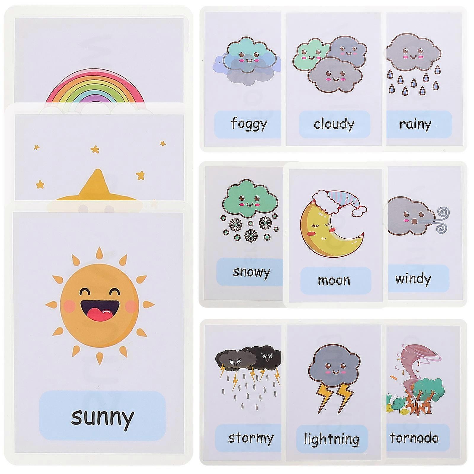 12pcs Weather Cognition Flash Cards for Early Learning, Educational Tool for Kindergarten and Classroom Use