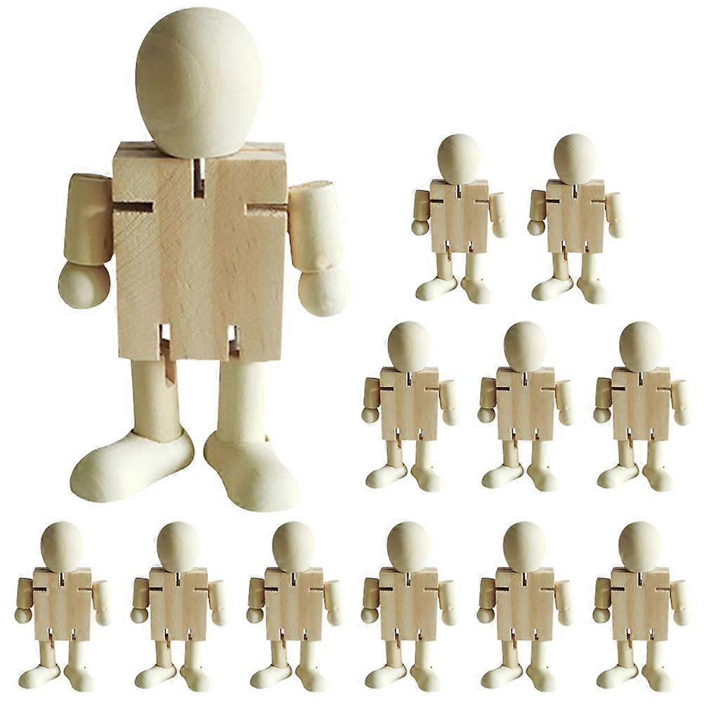 12Pcs Wooden Robot Figurines DIY Unfinished Robot Dolls Blank Robot Models DIY Painting Robot Models