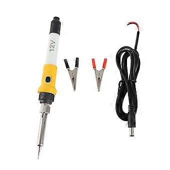 Experience reliable and efficient soldering with this Electric Soldering Iron featuring a convenient car crocodile clip for easy power connection. Designed with a built-in ceramic heating core, this soldering iron heats up quickly and ensures a long lifespan, making it perfect for outdoor and on-the-go soldering tasks. The heat-insulated silicone handle provides comfort and safety during extended use, reducing hand fatigue and preventing burns. Its compact and lightweight design promotes fast heat dissipation and portability, making it an essential tool for wiring repairs and simple soldering jobs in the field. Key Features: · Fast Heating Ceramic Core: Equipped with a durable ceramic heating element that quickly reaches optimal temperature, ensuring efficient soldering and extended service life. · DC12V Power Supply with Car Crocodile Clip: Designed for easy connection to DC12V power sources via the sturdy crocodile clip, ideal for use in outdoor or automotive environments. · Heat-Resistant Silicone Handle: Provides excellent insulation against heat, allowing comfortable and safe operation even during prolonged soldering tasks. · Compact and Lightweight Design: Portable and easy to carry with fast heat dissipation for consistent performance without overheating. · Versatile Use: Perfectly suited for simple outdoor soldering, wiring repair, maintenance, and DIY electrical projects. Specifications: · Voltage: DC12V · Power: 40W · Heating Element: Ceramic heating core Package Includes: · 1 x Electric Soldering Iron · 1 x Power Cable This Electric Soldering Iron combines portability, fast heating, and safety features, making it a practical choice for both professionals and hobbyists who require a dependable tool for outdoor and quick repair tasks.