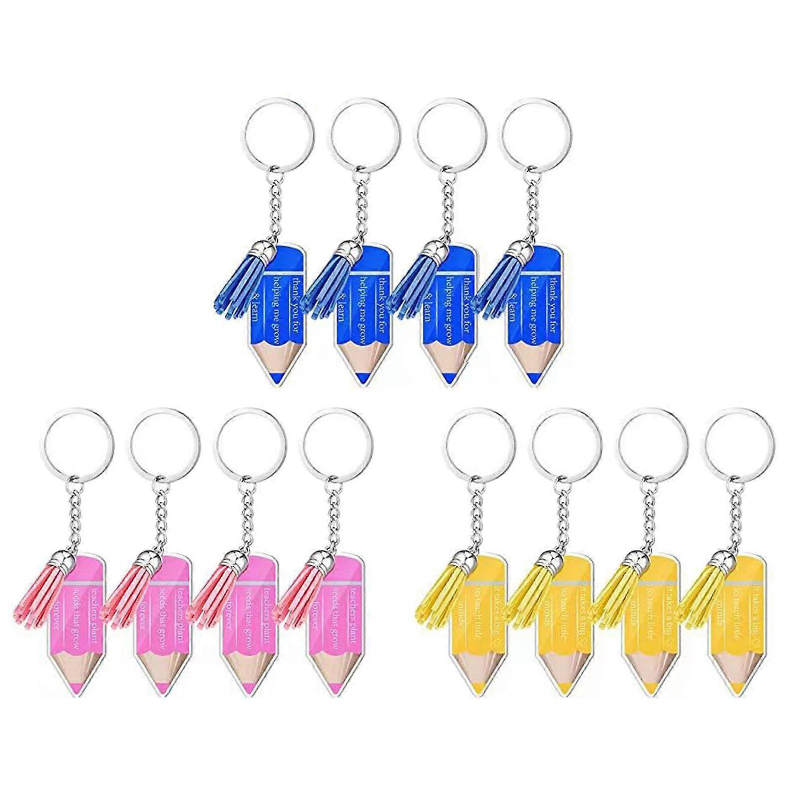 12x Clear Acrylic Ornaments Tassel Keychain Set Colourful Tassels Pencil Keychain Graduation Theme Student Keychain
