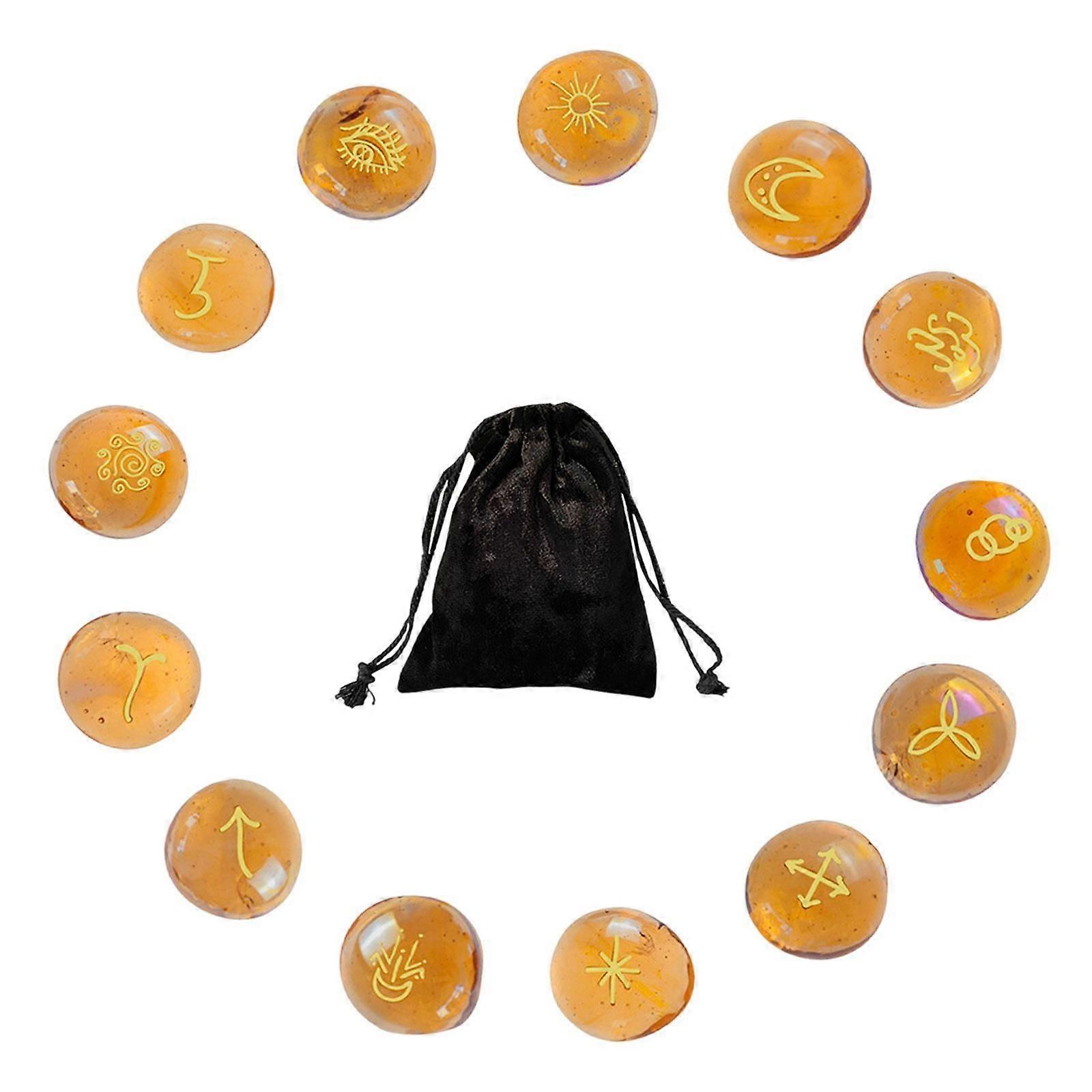 13 Pieces Runes Set Drawstring Bag Witch Gift Witch Supplies Divinatory Tool