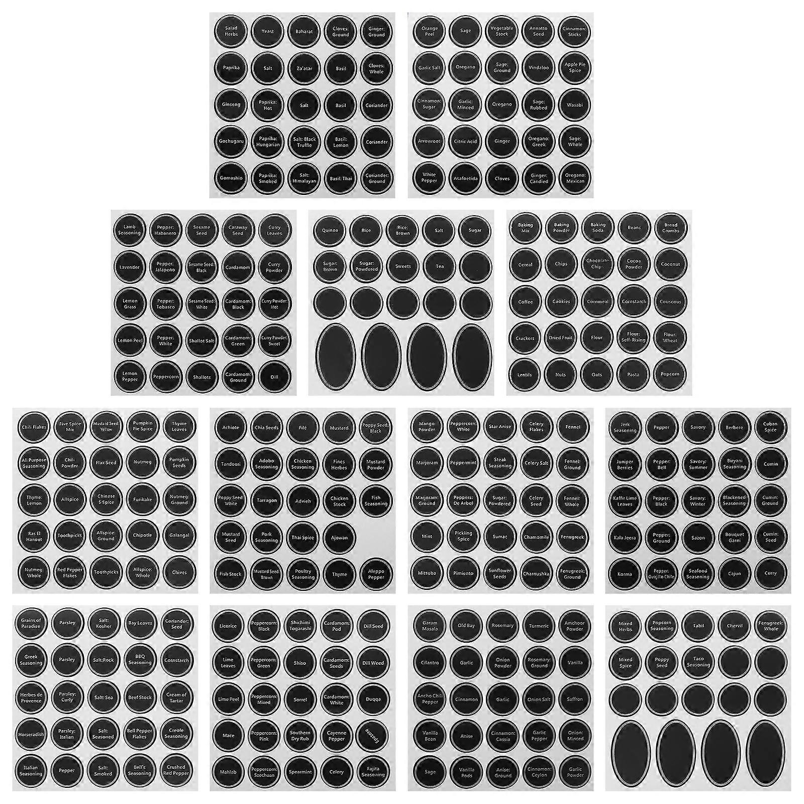 13 Sheets/Set Printed Spice Jar Labels Round Pantry Stickers Blackboard Sticker for Kitchen (Mixed Style)