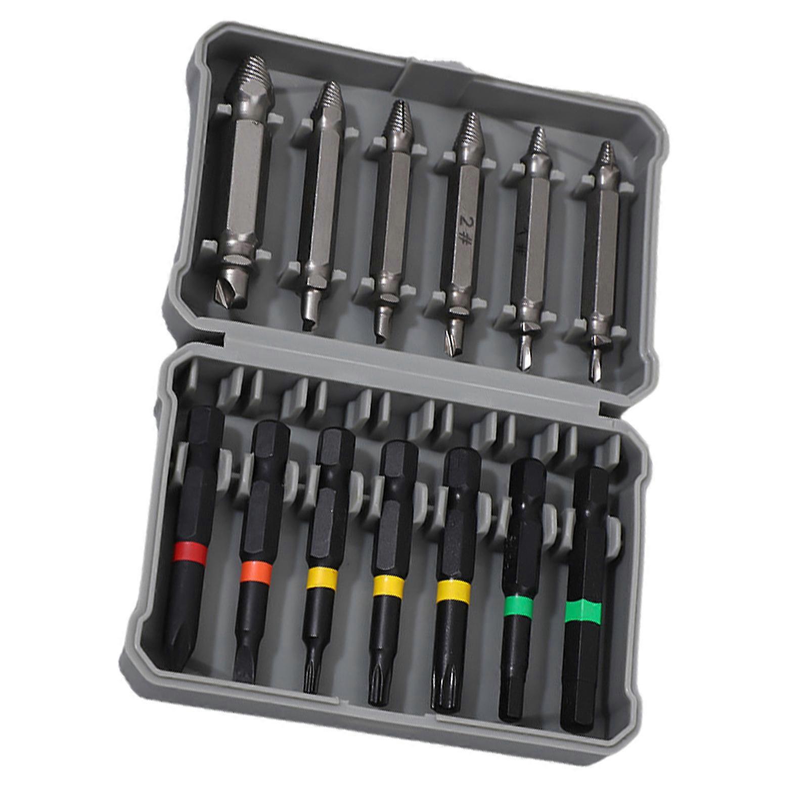 13Pcs Professiona Broken Screw Puller Coarse Tooth Fine Tooth Faucet Broken Wire Puller Screwdriver Tool Plastic Box Multicolor