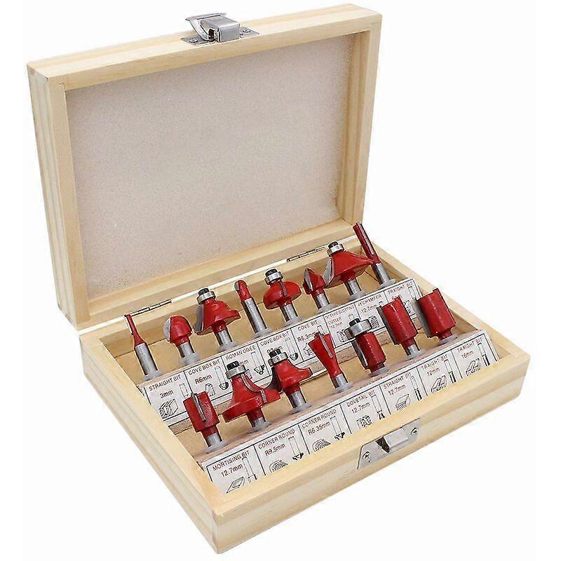 15 Pcs 6.35mm Shank Tungsten Carbide Router Bit Set Slotting Cutter Woodworking Router Bit Milling Cutter Router Bit Kit with Wooden Case