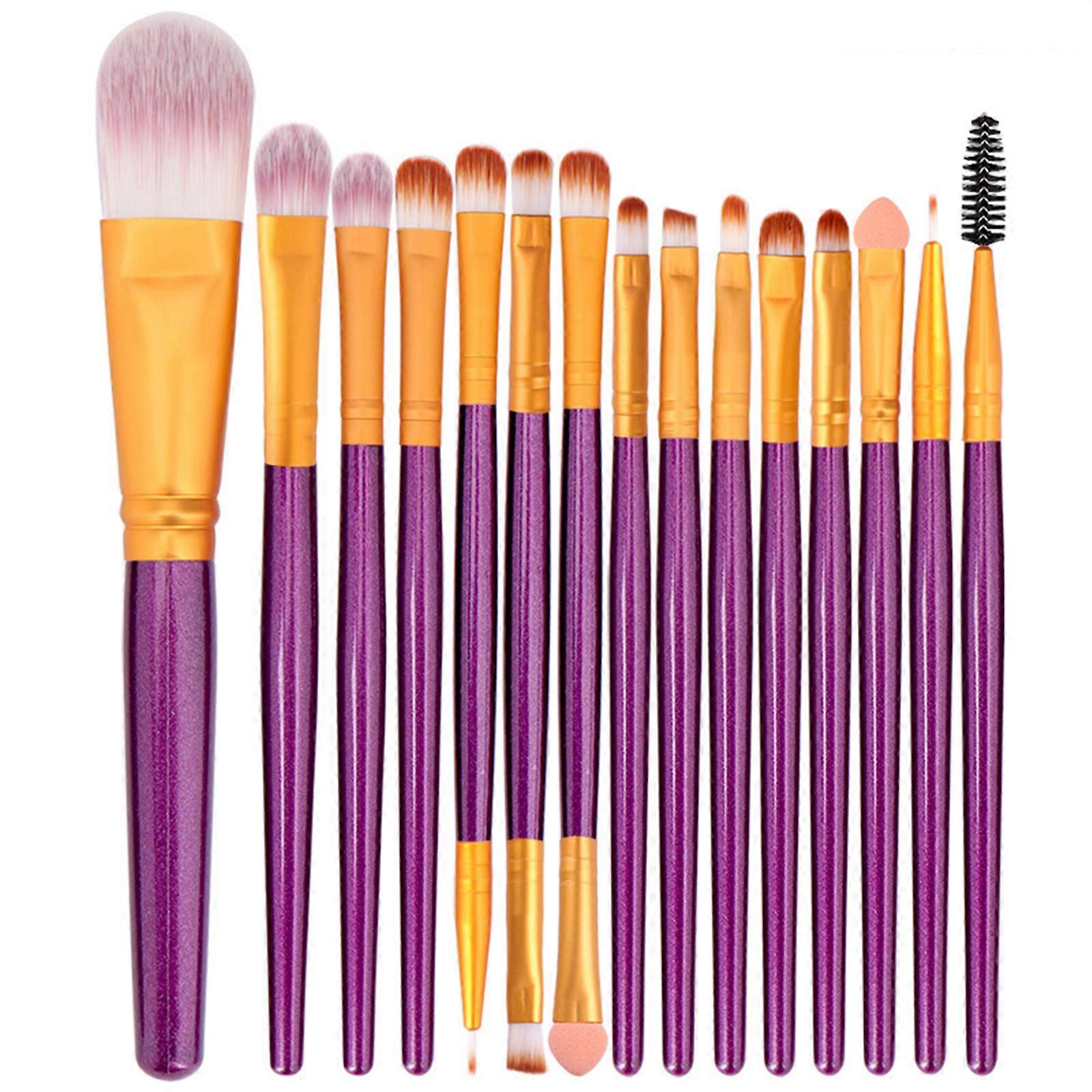 15 Pcs Makeup Brushes Set Foundation Blending Blusher Concealer Brow Eye Shadow Brushes Synthetic Fiber Makeup Brush Set