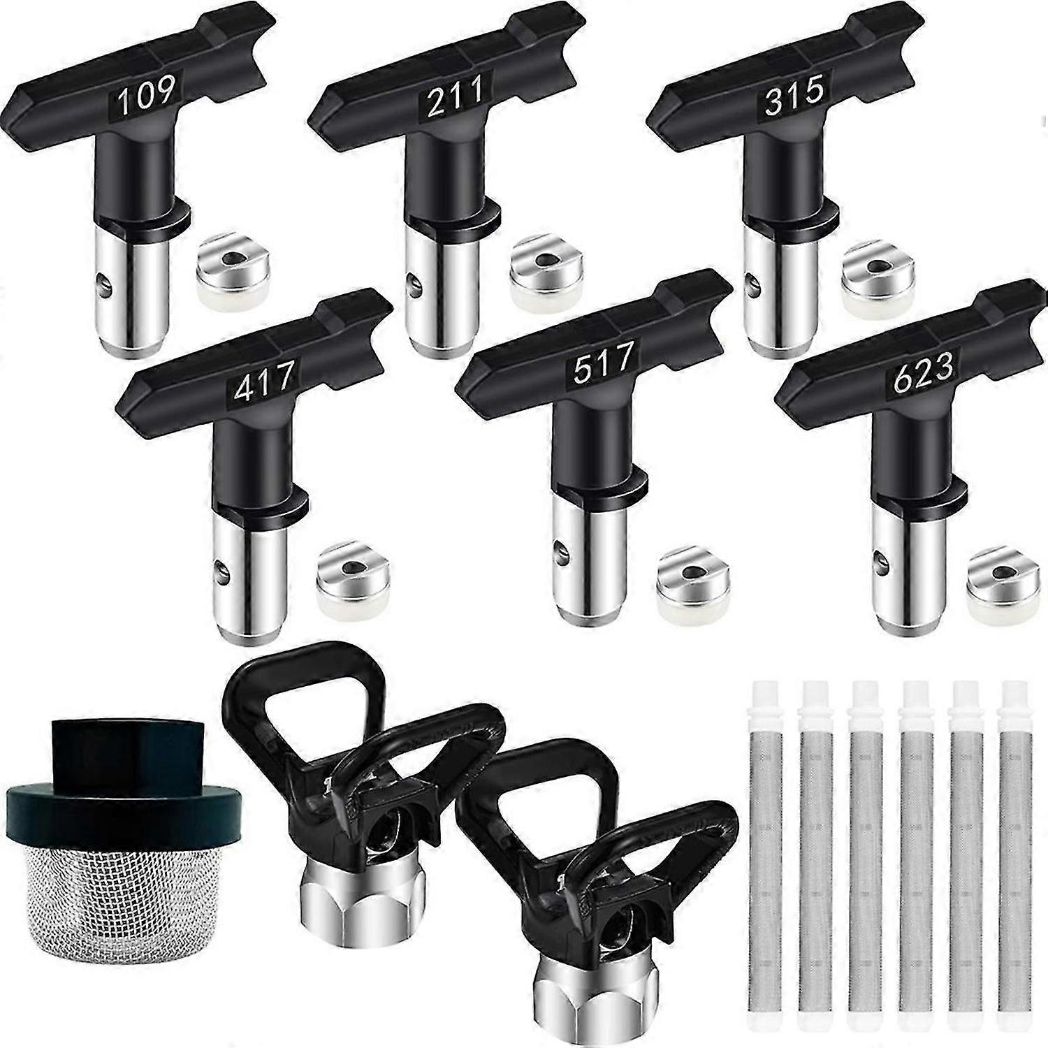 15 Pieces Paint Set, 6 Reversible Tips, 6 Airless Paint Filter,1 Inlet Strainer and 2Pcs Nozzle Tip