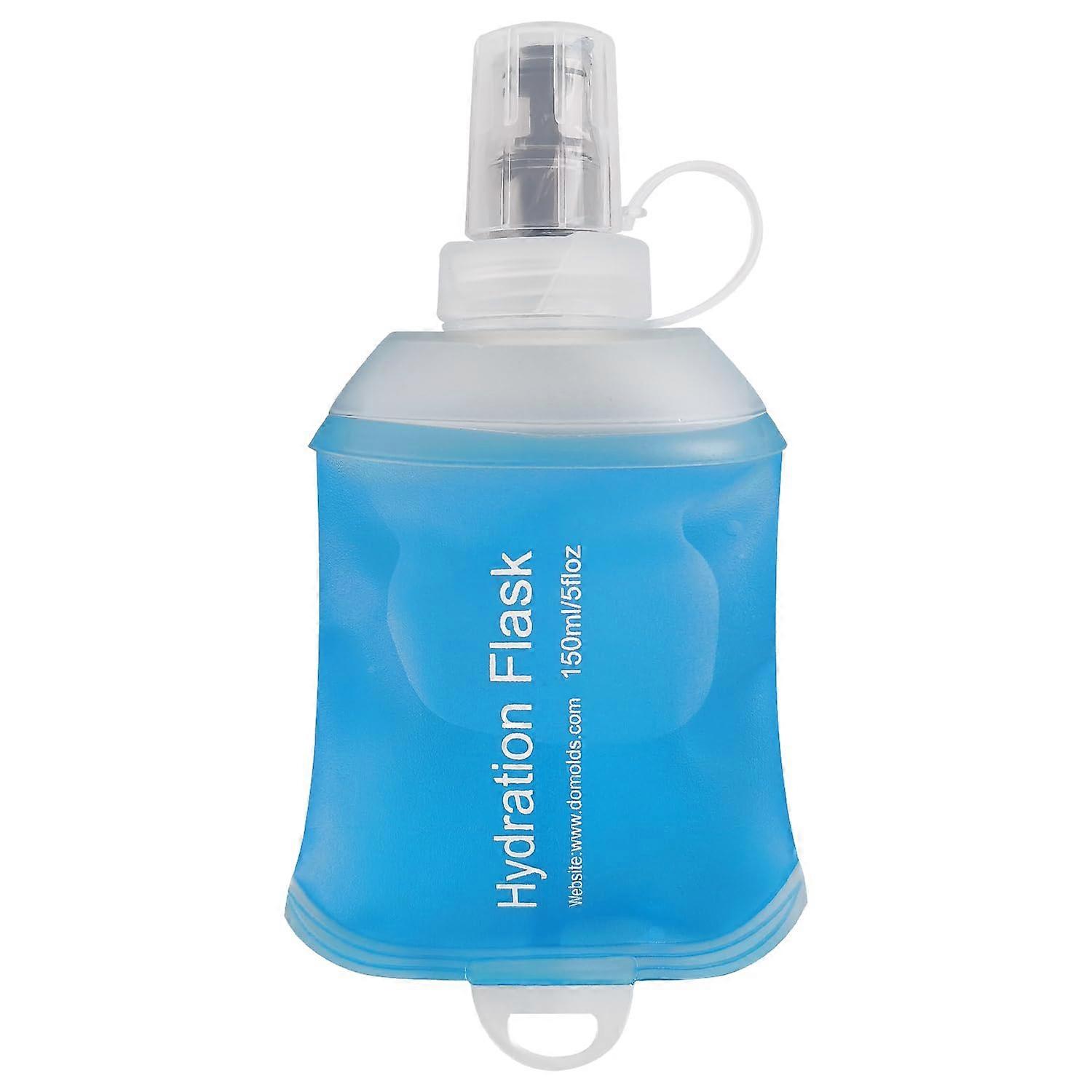 150ml Collapsible Soft Flask Water Bottle for Running Hiking Biking with Backpack Hook Blue