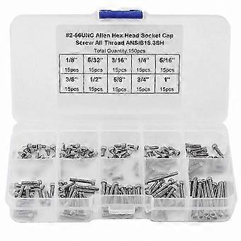 150PCS Hex Socket Cap Screws Assortment, #2-56 UNC 9 Sizes in Plastic Storage Box