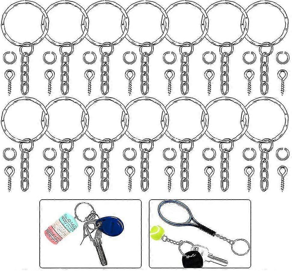 150pcs Key Chain Rings Key Rings Set With Link Chain Open Jump Ring And Eye Screws For Crafts Diy(1"25mm)