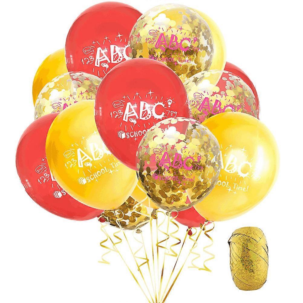 16pcs Gold & Red Printed Balloons Set for Classroom Decorations – Latex Confetti Balloons with Golden Ribbon for School Parties & Events
