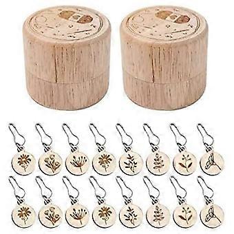 16Pcs Removable Stitch Markers with Wooden Storage Box for Knitting