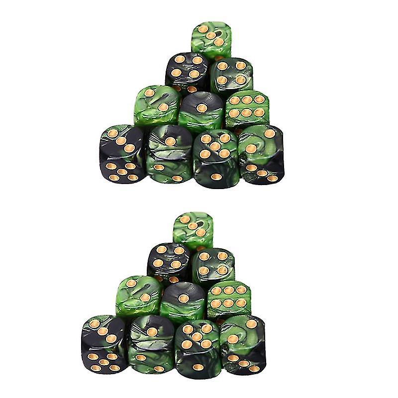 1.6X1.6cm Green-black Toy Tools 25pcs Six Sided Rounded Corner Dices Funny Game Dice Entertainment D