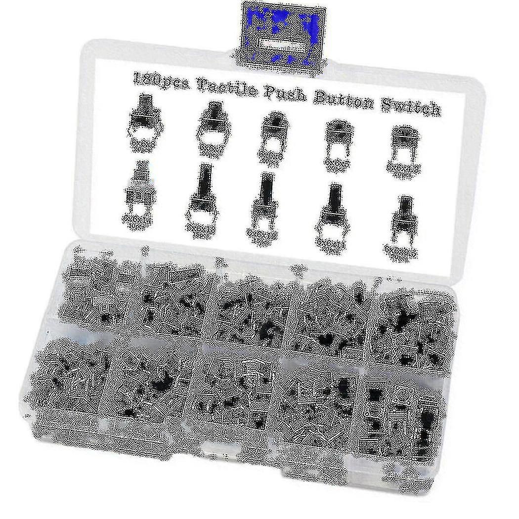 180 Pcs 10 Values Tactile Push Button Switch Mini Momentary Tact Assorted Kits