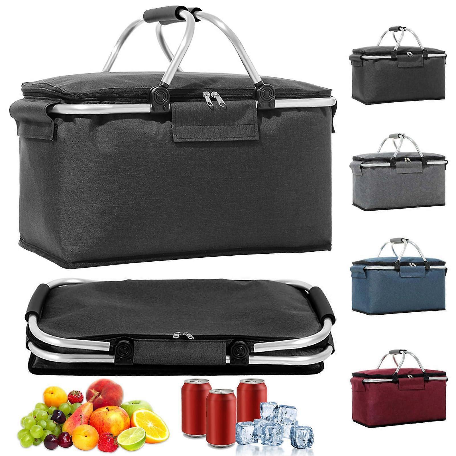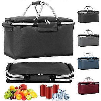 18L Foldable Shopping Basket with Cooling Function, Lid, Insulated Black