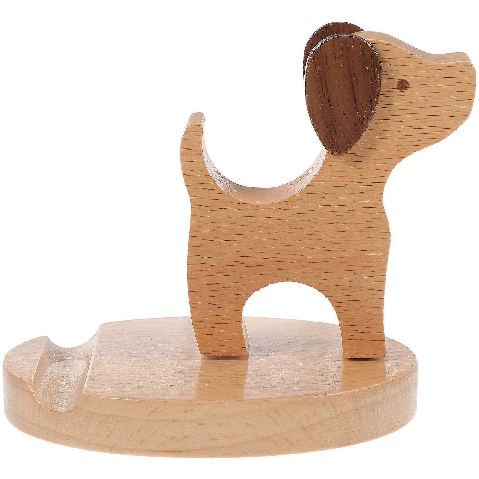 1pc Creative Dog Shape Desktop Wooden Phone Bracket Mobile Display Stand (Khaki)
