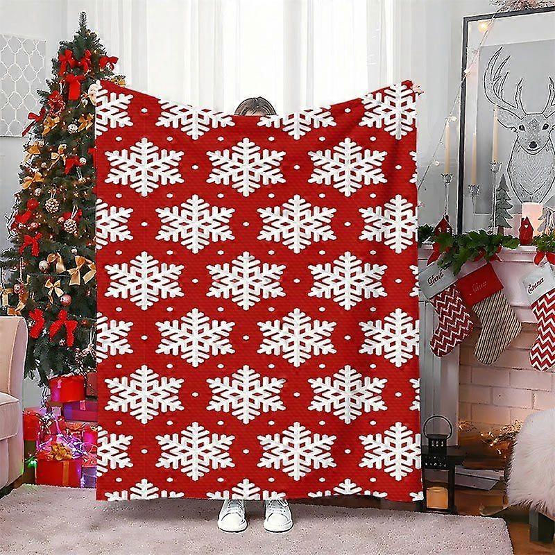 1pc Red Base White Snowflake Full Print Flannel Blanket, Simple and Elegant Christmas Style. Exquisite Snowflake Pattern-poiuy334
