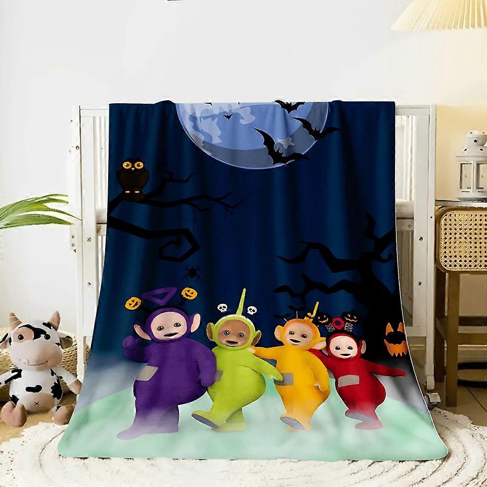 1pc Teletubbies Flannel Blanket - Soft All-Season Throw with Tessa, Dipsy, Po, and Vi Characters, Machine Washable for S-azxcv153