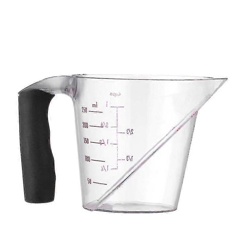 This item is a transparent measuring cup which are made of food grade material. Lightweight and practical. It is convenient to measure with scale lines. Besides, portable handle is easy for you to carry, you can easy to clean it, suitable for baking shop, and home use, etc. Features - Color: Assorted Color. - Material: PS. - Size: About 14.00X9.00X9.50cm/5.50X3.54X3.73inch. - Select safe and premiummaterial, having long service life. - With easy-to-read markings that contrast nicely for easier and accurate measuring. - The measuring cup can be used for measuring liquid, batter and distributing batter and juice. -Can be used inbaking shop, home use, etc. - Things will become moreconvenient with scale lines.