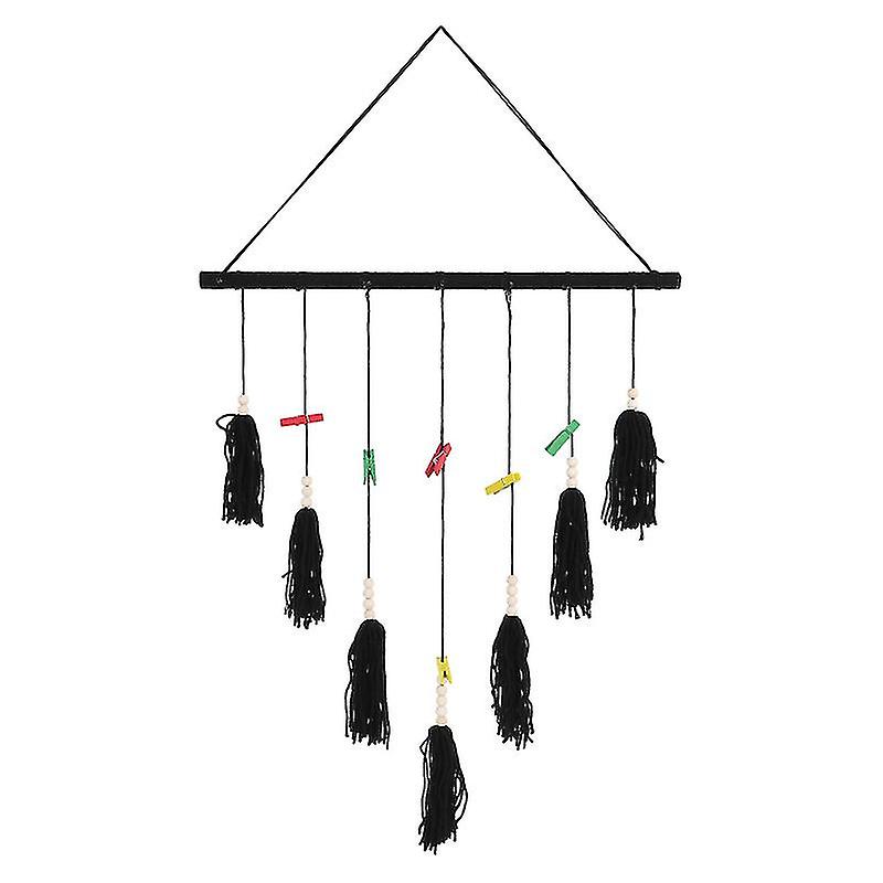 As children grow up, most parents will think of all the possible way to record every important moment of their development. This tassel string set will help you hold any photos, artwork or cards on living room, bedroom, reading room or any wall you like. They are not only decoration, but also a bond of parents and children. Features -Color: Black - Material: Wool, wood stick - Size: 65.00X40.00X0.50cm/25.55X15.72X0.20inch -Excellent workmanship with premium materials, make it safe and sturdy, and is durable for long lasting decoration use. -Come with a set of a tassel string with 5pcs clips included, giving you enough clips to clip on your pictures you like, and can use it as a photo prop. -Can apply to any wall such as restaurant, office, living room, bedroom, looking these picture on the string, can recall the past and look forward to the future. -Good assistant for your layout and easy to DIY your own household style of family gathering such as Thanksgiving and Christmas, also can clip memory together with your family on this string.