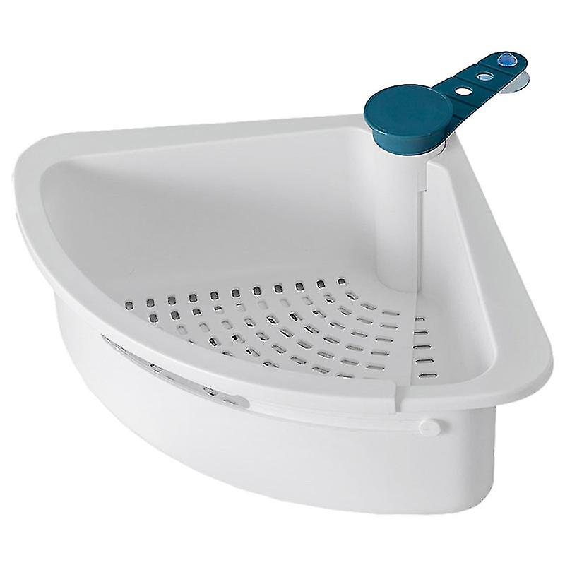 Features -Color: White Blue. - Material: Plastic. - Size: About 39.00X25.20X11.00cm/ 15.33X9.90X4.32in. - The sink drain strainer has sturdy suction cup, easy to install and remove. - The triangular sink drain shelf is great help for kitchen and washroom. - The sink basket helps to save space and keep the kitchen well-organized and clean. - Great for holding fruit and vegetable kitchen drain basket, cleaning sponge, dishes, etc.