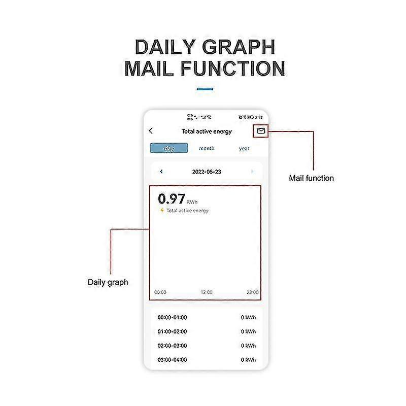 Description: , this TUYA wifi energy meter will update the Kwh data when disconnect with wifi, other type Metering circuit breaker will not increase the Kwh when discounnect with wifi. 1. Remote Control ON/OFF by Tuya APP or Smart Life APP at anytime from anywhere. 2. active energy kWh measure. 3. APP can read kWh , .S current , voltage , active power 4. Timer control function. 5. Delay time cut off function. 6. LCD display, Real-time display of Voltage, Current, Active Power, reactive Power, power factory ,frequence, Energy kWh 7. Power Supply: 90-300V AC 50/60Hz. 8. Rated Current: 65A. 10. Pulse Frequency: 1600imp/kWh 11. 35mm Din Rail install. 12. can use same TUYA APP , compatible with other TUYA product such WIFI socket , led ,fans and so on. 13. Active energy accurate is class 1 , IEC62053-21 Push the button last more than 10s , the WIFI led will flash quickly , then use APP to operation bear 400V /hour not damage Note:This meter Only supports 2.4G Wireless Network, NOT for 5G NEW function: 1. Positive and negative phase power + historical power 2. Power email export function 3. PV difference power display 4. Electricity bill display 5. Carbon emissions settings 6. Note that there is no temperature display, leakage protection, unbalance protection function, external power failure, the meter will not be switched off for protection 7. Manual button switch control 8. The function of comparing the power with the power of the meter 9. Power curve display 15 minutes for 24 hours of the day 1 0. Overvoltage and overcurrent protection settings 11. Operation records and failsafe records 12. Password settings color: White Material: plastic + metal Package Contents: 1 x WIFI Smart Energy Meter Only the above package content, other products are not included. Note: Light and different displays may cause the color of the item in the picture a little different from the real thing. The measurement allowed error is +/- 1-3cm.