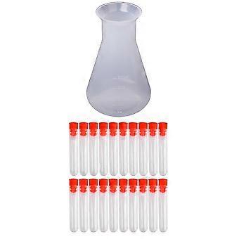 1x 250ml Conical Flask Bottle & 20x Non-Graduated Test Tubes with Screw Caps