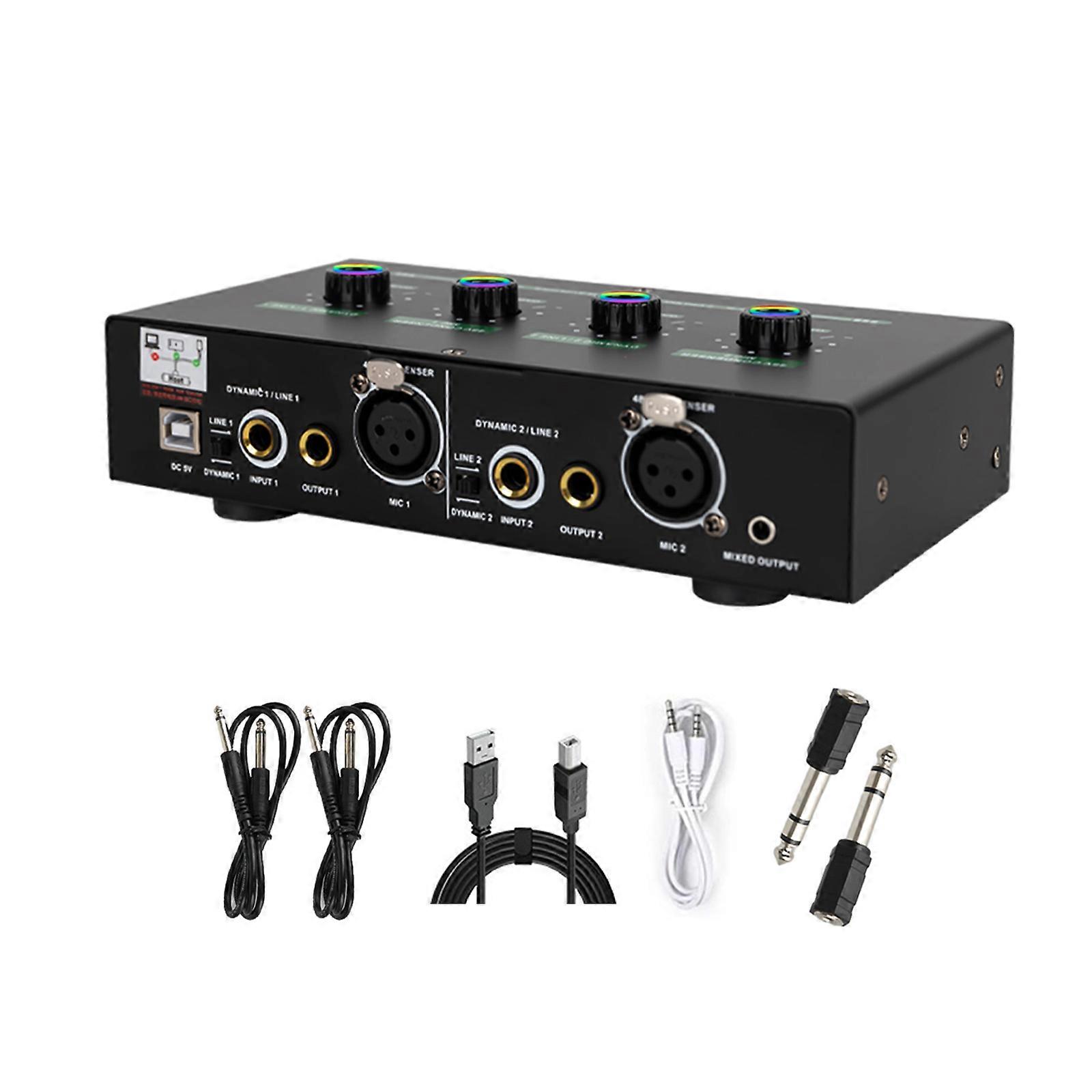 2 Channel Portable Auditory Mixer Reverbed Effects Metal Construction Universal Device Compatibility Multicolor