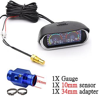 2 In 1 12v/24v Lcd Car Digital Horizontal Gauge Water Temp Gauge Meter Voltmeter Voltage Gauges With Temperature Sensor