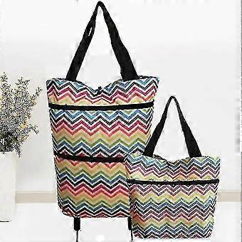 2 In 1 Foldable Shopping Cart Collapsible Dual-zip Folding Shopping Bag With Wheels