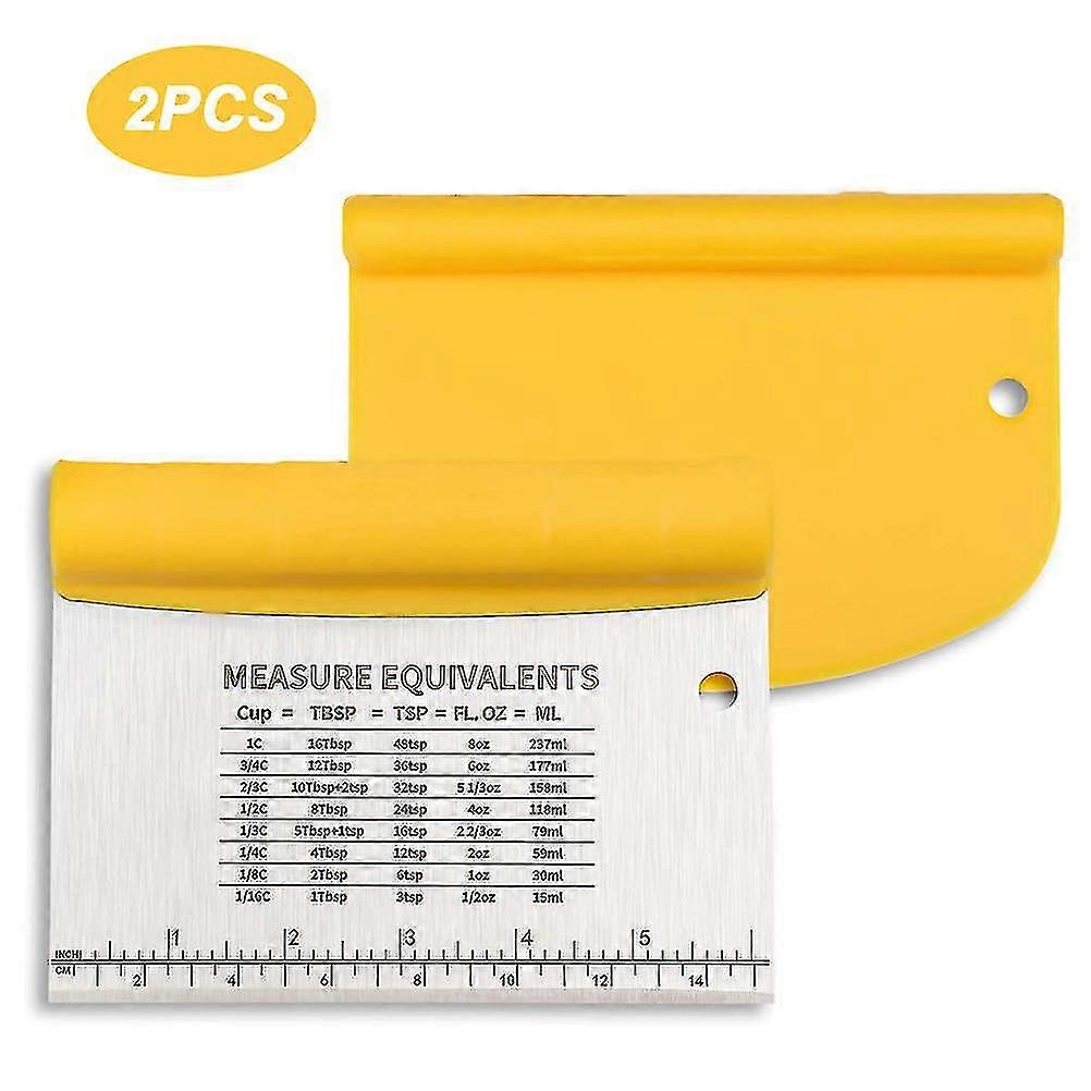 2 in 1 Stainless Steel Bench Dough Scraper Set - Multi Function Bread Making Tools with Measurement