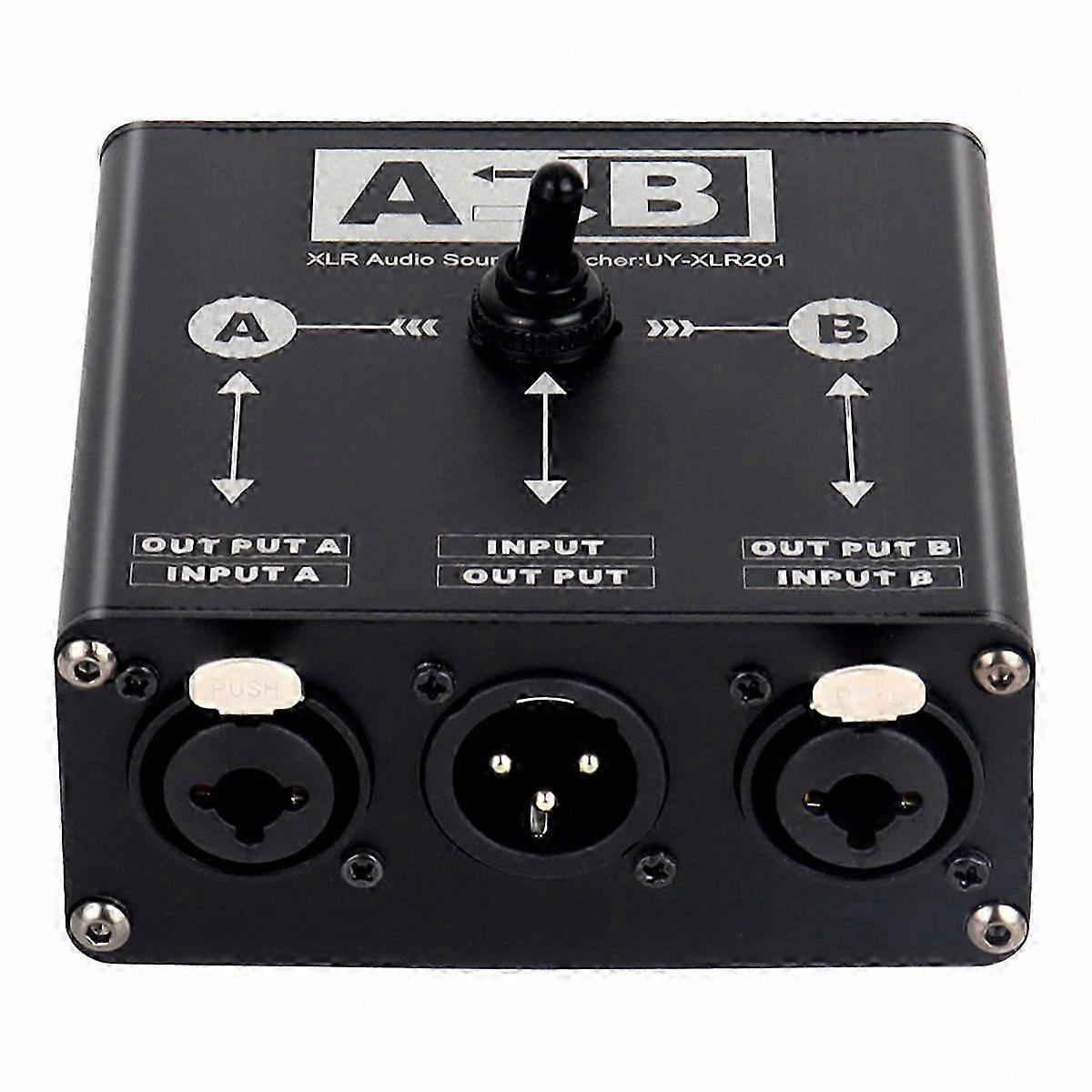 2-in-1 XLR Audio Switcher Box for Microphone, Mixer, and Sound Card Manual Selection with Balanced Inputs and Outputs