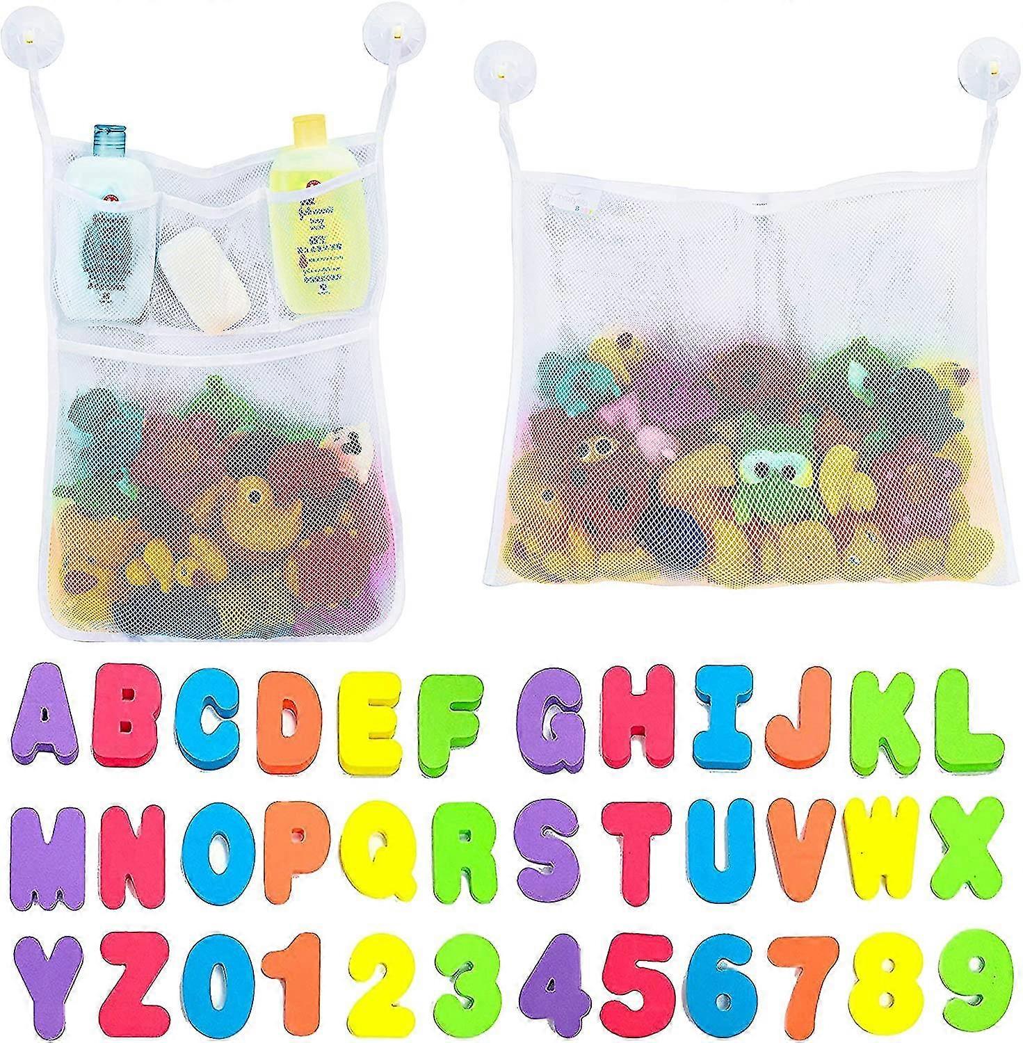 2 Mesh Bath Toy Organizer , 4 Ultra Hooks , 36 Bath Letters