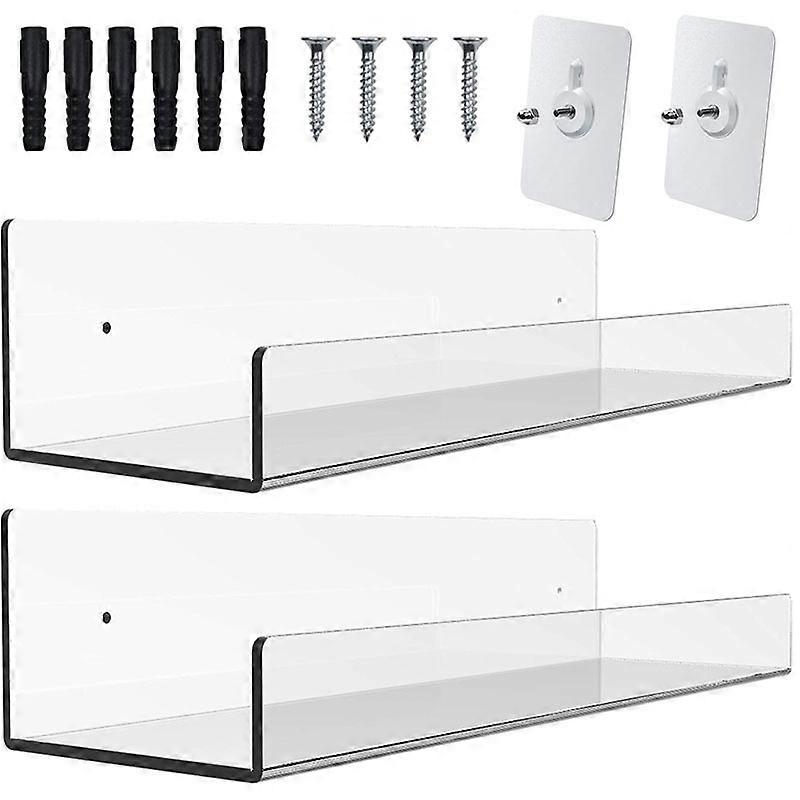 2 Pack 15 Inch Acrylic Invisible Kids Floating Bookshelf for Kids Room,Modern Picture Ledge Display